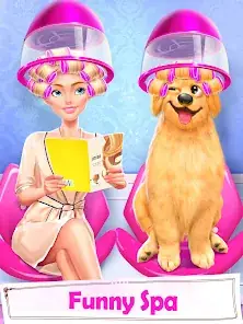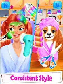 Experience a fun girls' pet salon game! You can do manicures, nail trimming, and makeup for each dog and girl.