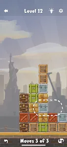 This game has simple rules but tricky challenges.You can move, drop and swap the boxes. Three or more boxes of the same kind in a line disappear. Watch out for turns, you only have a limited number! Enjoy the satisfaction of resolving hard levels in many major ports on all continents!
